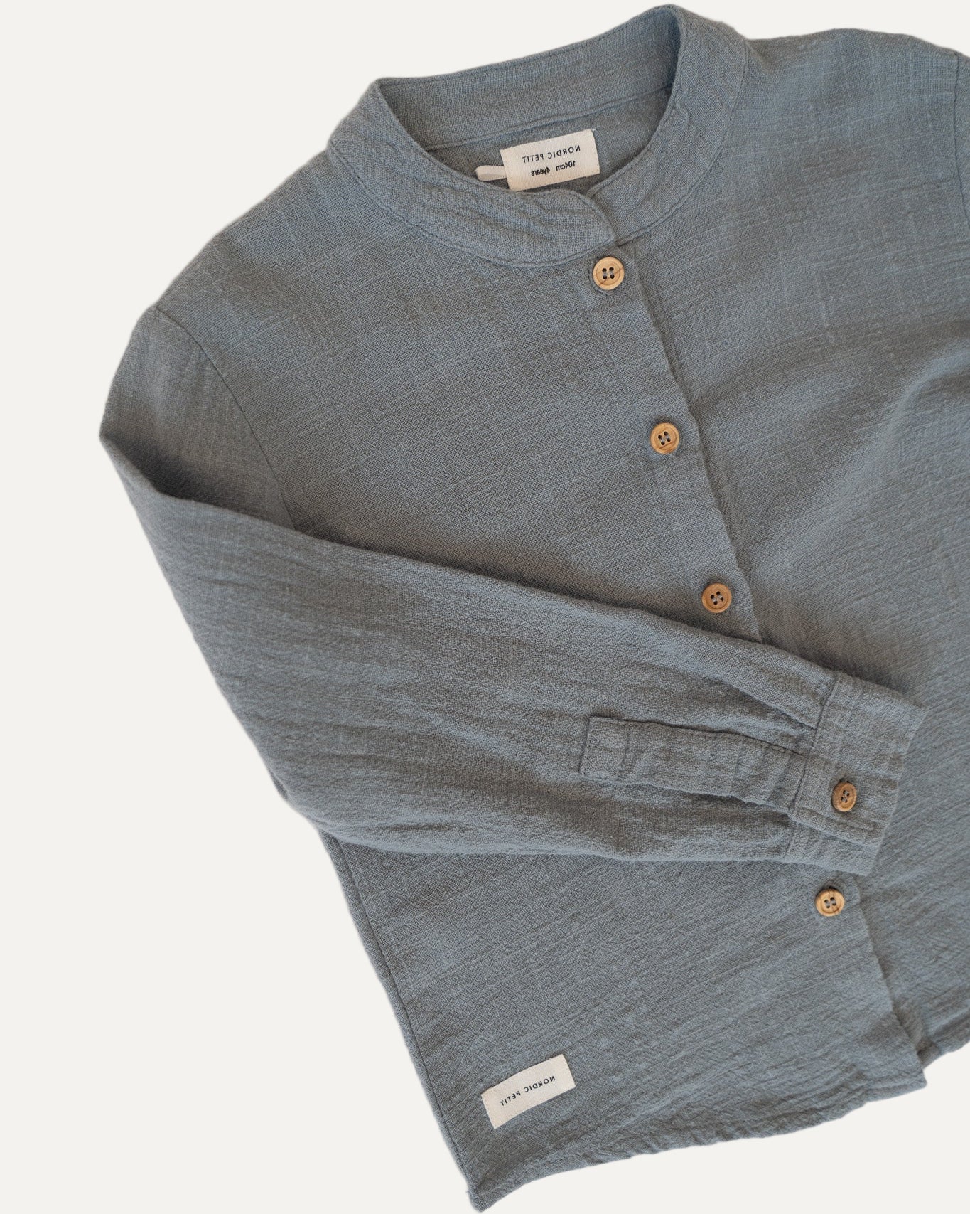 Tillverkad i 100 % bomull med en vävd slubstruktur som ger ett naturligt linne-utseende. Skjortan har långa ärmar, träknappar fram och vid manschetterna samt en regular fit med diskret logodetalj nedtill till vänster. Tyget kombinerar linnekänslan med bomullens mjukhet och enkla skötsel. Matcha med våra linne-look byxor för ett komplett och stilfullt set.